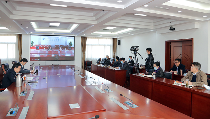 王邵军在会议开始时说,这次会议主要是贯彻习近平总书记在统筹推进新冠肺炎疫情防控和经济社会发展工作部署会议上的重要讲话精神,落实山东省和教育部的相关部署要求,统筹推进疫情防控和学校改革发展工作,安排部署今年工作任务。正值疫情防控特殊时期,为安全起见,首次采用在线视频的方式召开会议。