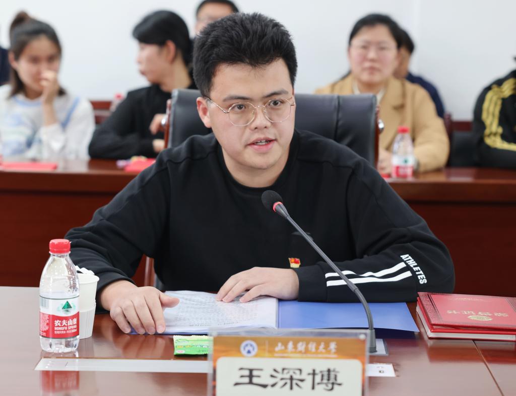 经济学院党委副书记李冰封、财政税务学院党委副书记滕晖作为先进单位代表发言,介绍了各自工作做法。