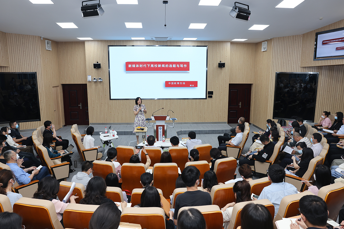 中国教育在线华东北区主编闫文以《新媒体时代下高校新闻的选题与写作》为题进行了生动讲解。她提出,做好高校新闻宣传工作,要充分认识和把握网络时代媒体的演变与特征,逐步积累高校新闻选题的经验与技巧,通过认真写作、制作好标题等,让新闻稿件以质量取胜,走进读者的心里。在正在开展的主题教育中,要提高政治站位,精选新闻素材,精心构思写作,通过各类媒体共同发力,为主题教育营造良好的舆论氛围。