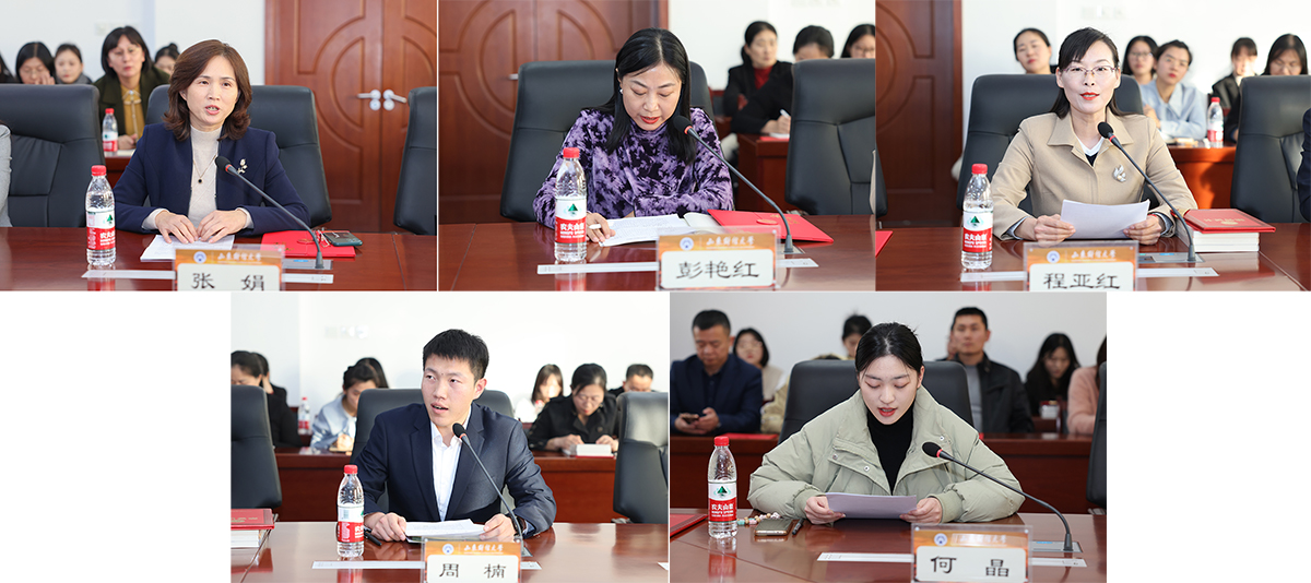 保险学院党委书记张娟、工商管理学院党委副书记彭艳红作为先进单位代表发言。2020年度校级“最美教师”程亚红作为先进个人代表、2023级经济学院硕士研究生周楠作为征文比赛获奖者代表发言,何晶代表校报学生记者发言。