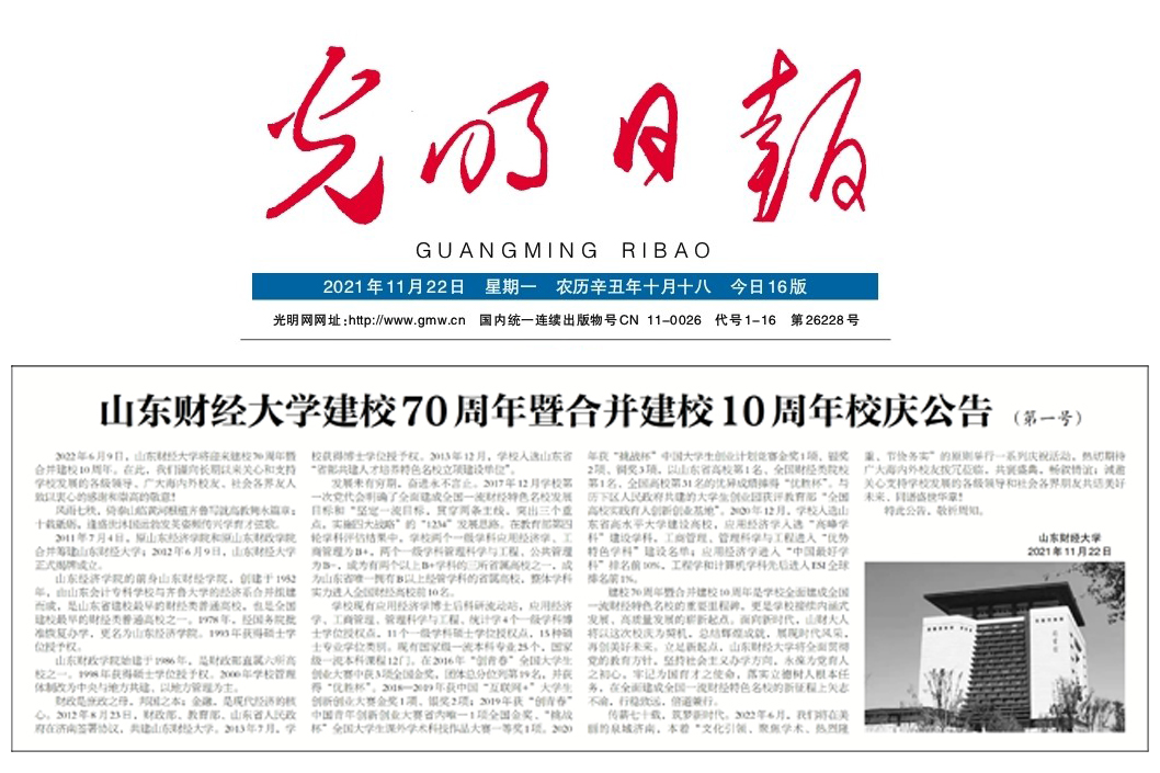 2022年6月9日,山东财经大学将迎来建校70周年暨合并建校10周年。在此,我们谨向长期以来关心和支持学校发展的各级领导、广大海内外校友、社会各界友人致以衷心的感谢和崇高的敬意!